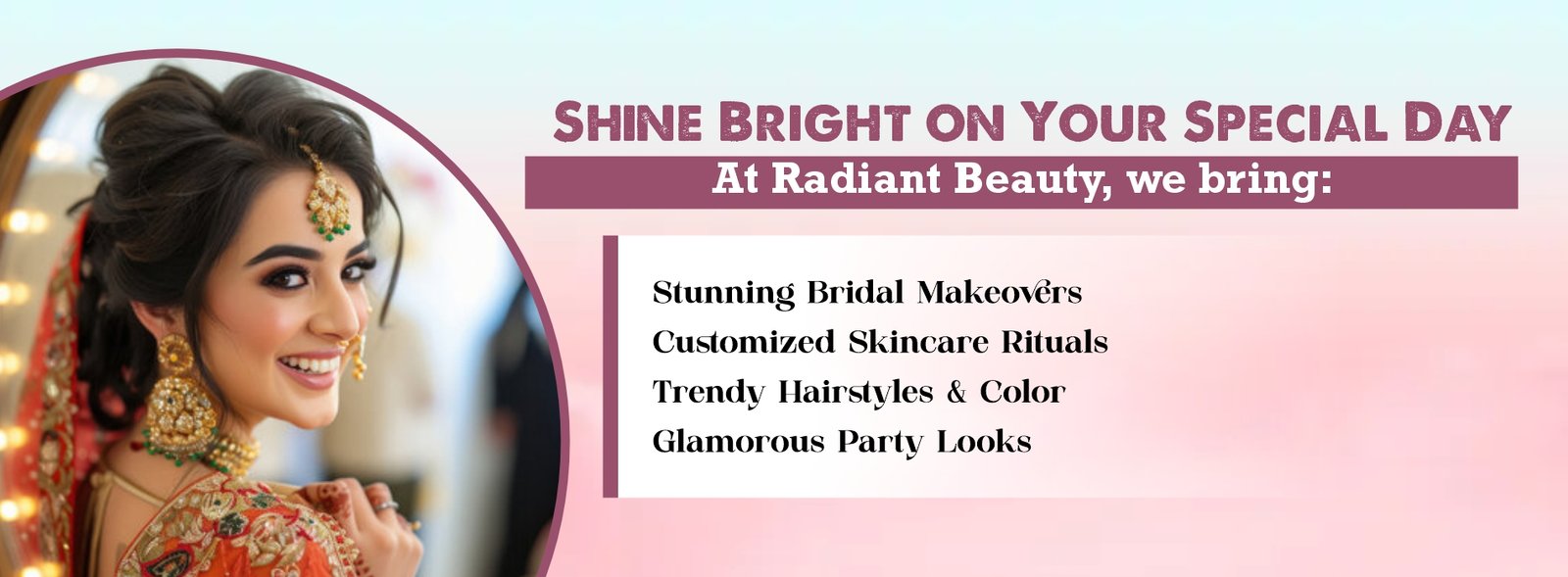 Our expert make-up services create flawless, radiant looks for weddings, parties, and special occasions, enhancing natural beauty with elegance and confidence.